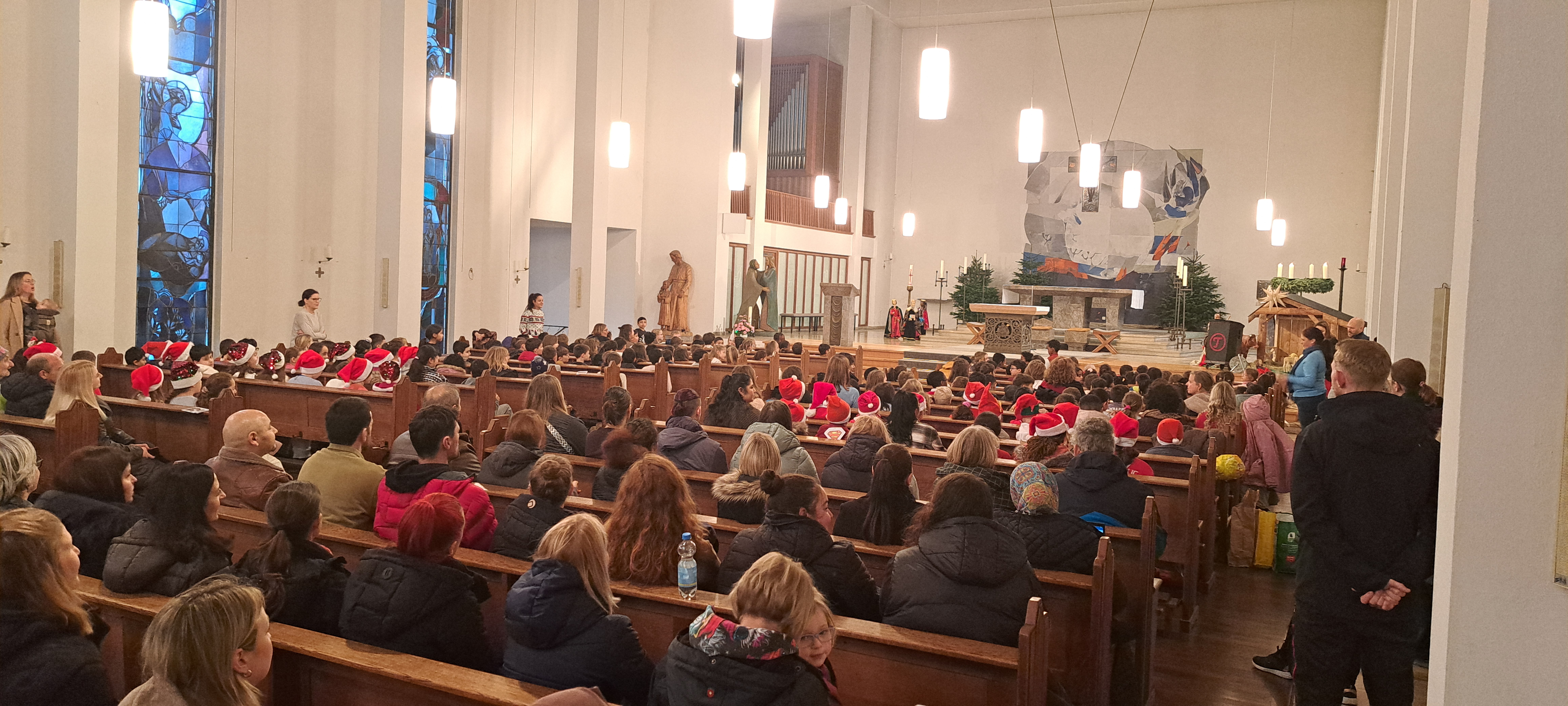 Heute fand in der Kirche St. Marien unsere alljährliche Weihnachtsfeier statt. Alle Klassen haben dazu in den vergangenen Tagen einen Beitrag eingeübt. Auch die Eltern waren dazu eingeladen. Schön, dass so viele von Ihnen dabei waren als die Kinder die Lieder "Das Licht in mir" (1a), "Merry Christmas" (2b) und "Jingle Bells" (3a/b) gesungen und in Form kleiner Theaterstücke "Der Hut vom Weihnachtsmann" (2a), "Der Weihnachtsmann im Fitnessstudio" (4a/b) und "Let it snow" (1b) aufgeführt haben.