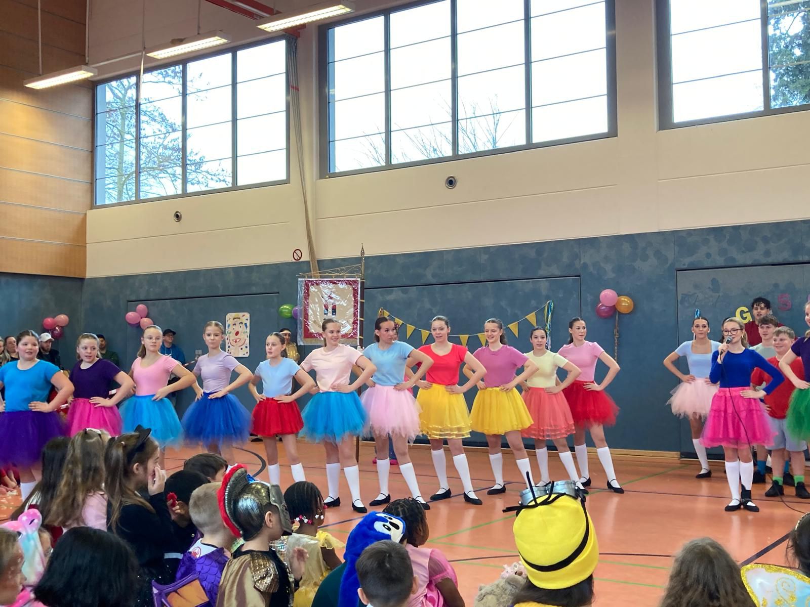 Danach gab es jede Menge jecke Beiträge unserer Klassen: kölsche Lieder, lustige Sketche, laute Trommeln und auch gewagte Akrobatik waren dabei.