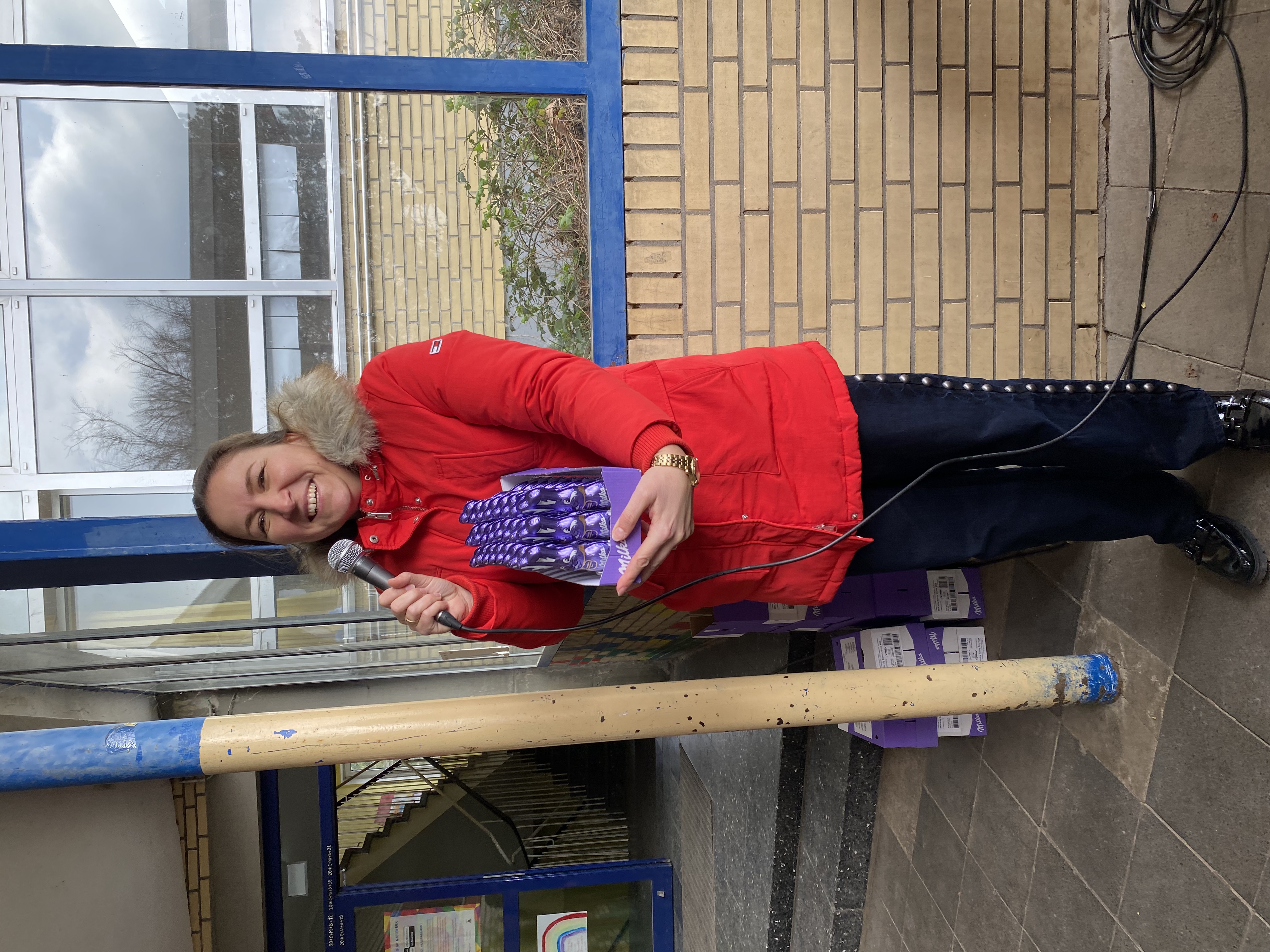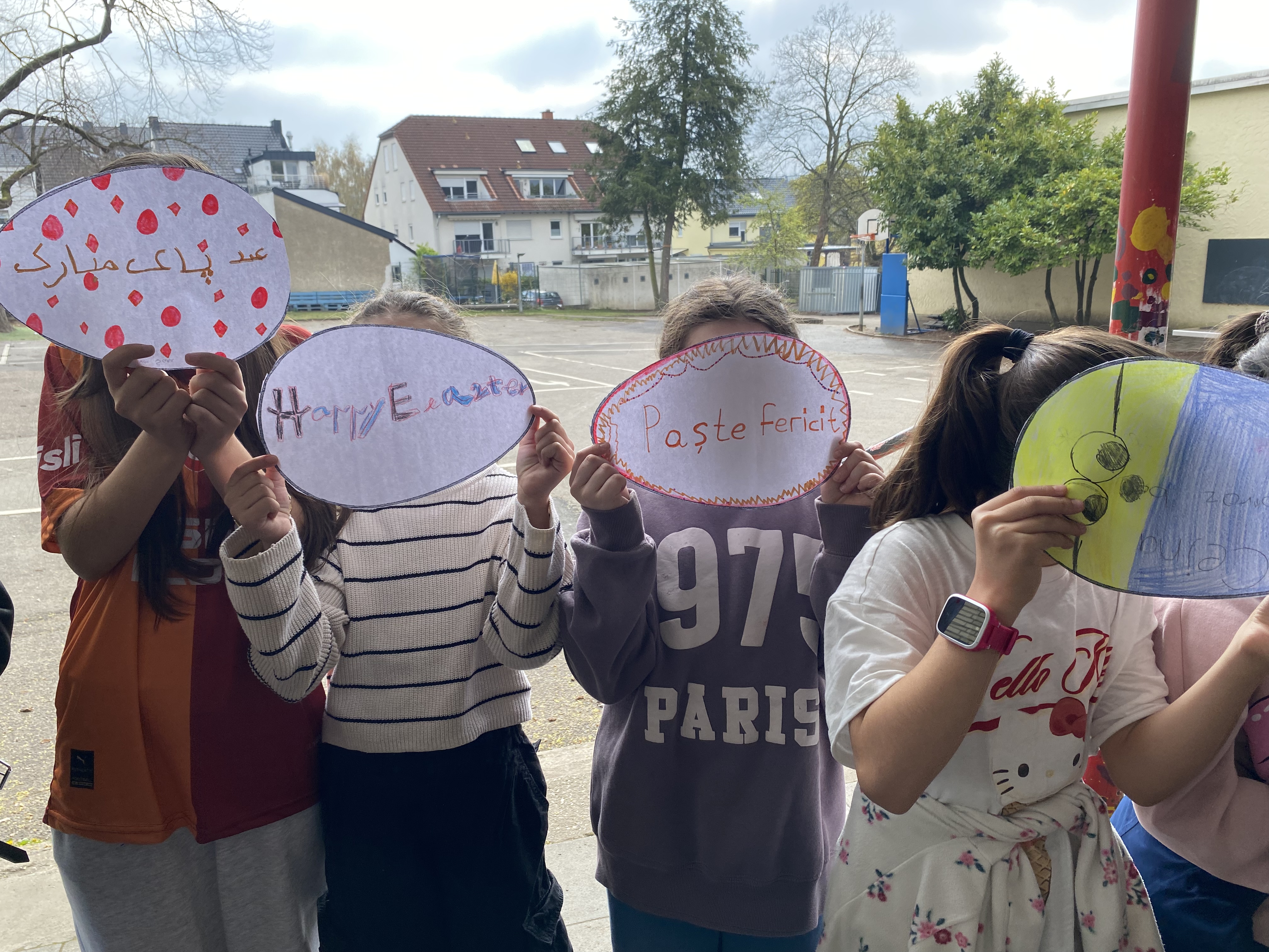 Heute haben wir unter dem Pausendach unser Ostersingen veranstaltet. Mit Liedern, Gedichten und Tanzaufführungen haben wir gemeinsam den Frühling begrüßt, auch wenn die Temperaturen heute nicht ganz frühlingshaft waren.
